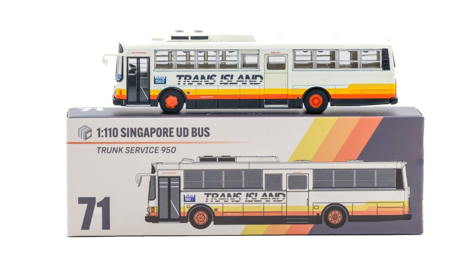 71 |  | MCCITY110-UD71 | Trans-Island Bus Services | Nissan Diesel U31SCN | White/yellow/orange | TIB312H | 950 | - | 08/25 |