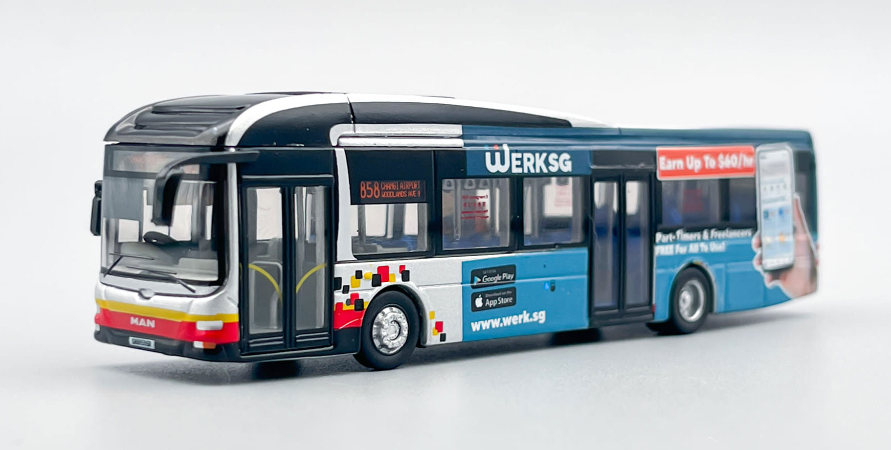 55 |  | MCCITY110-A2255 | Tower Transit | MAN A22 Gemilang | 'WerkSG' | SMB1595R | 858 | Changhi Airport < > Yishun MRT | 07/24 |