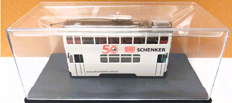 | Details of this tram were received in late December 2025. This model carries decals marking the company's 50 years in Hong Kong, which occurred in 2016. | ||||||||||||