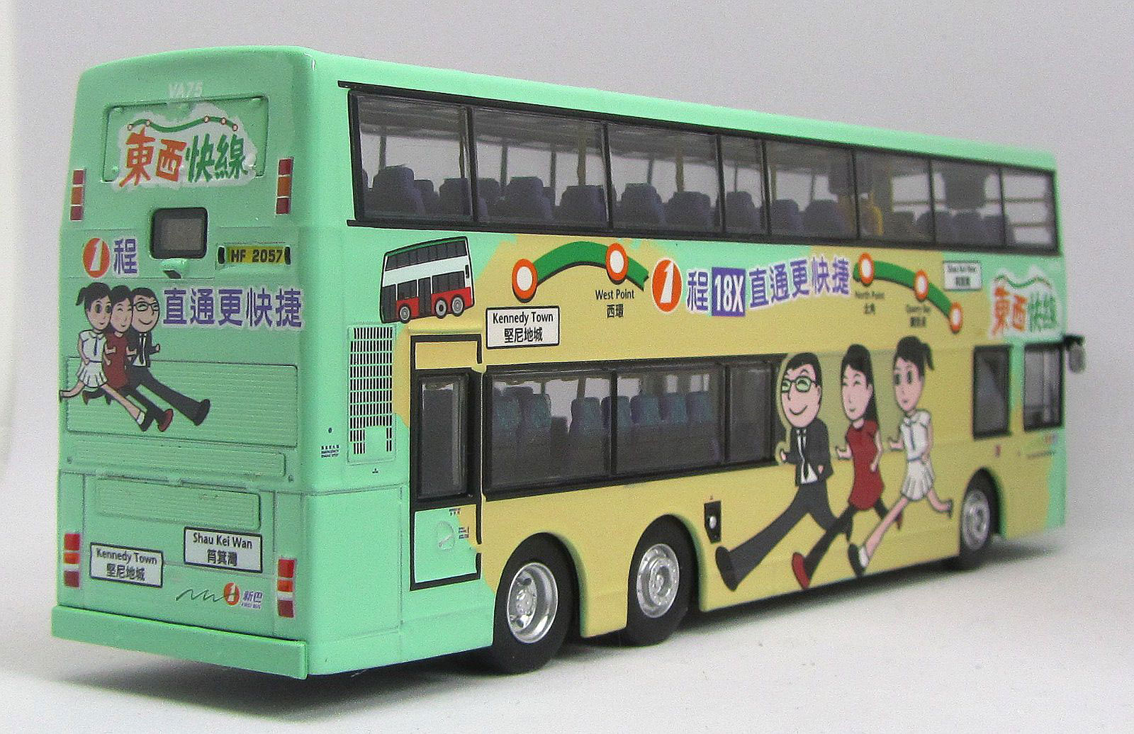 The bus - On 12th March 2014 ten Citybus 12-metre Volvo Olympians were to be transferred to the New World First Bus fleet. The buses were renumbered VA67 to VA76 and the first of the batch carried NWFB driver recruitment advertisements. On 24th April 2014, VA75 appeared in a route branded livery. VA75 was originally Citybus 625 and was first registered on 7th July 1997. |