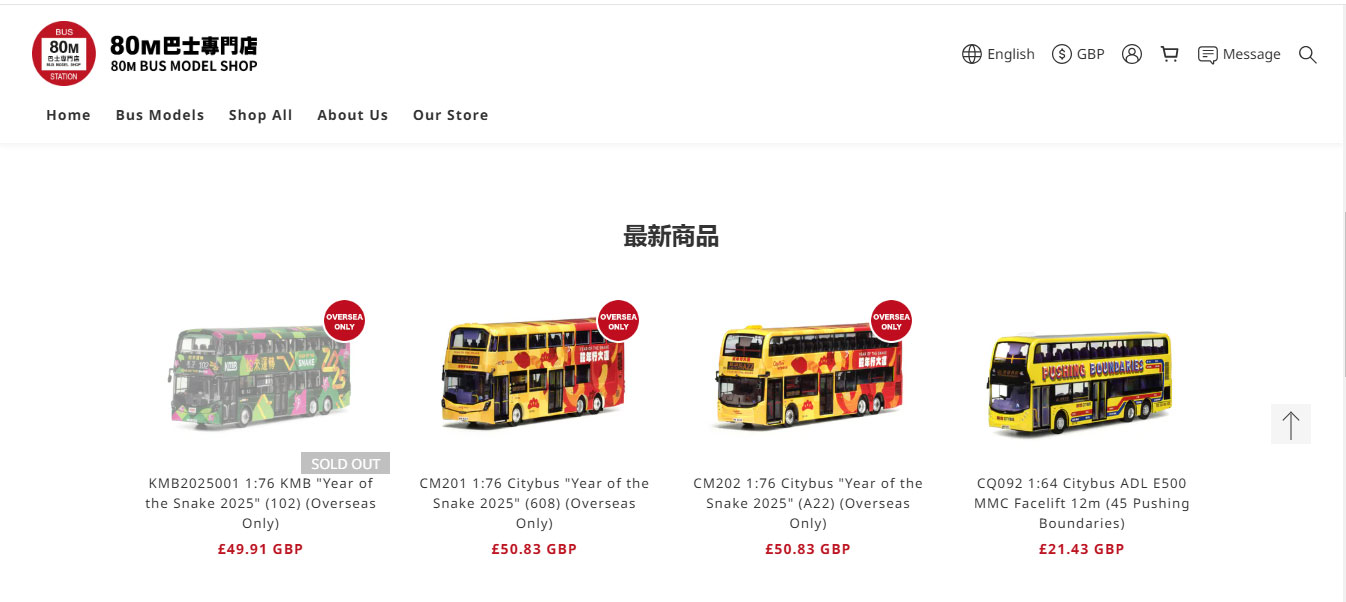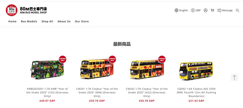 Now available on the 80M Bus Model Shop website (for overseas customers) are the three Year of the Snake models. Also shown (far right) is one of the new 1/64 scale Citybus models. 15th February 2025