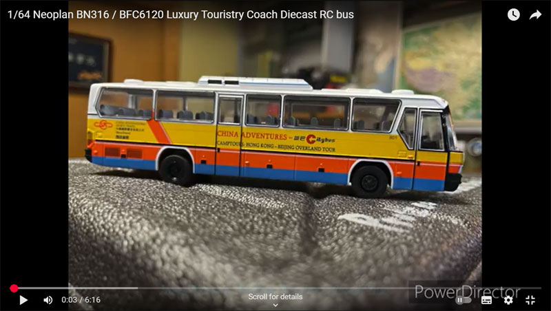 My thanks to Victor MA for advising me of his YouTube video of the recently released 1/64 scale radio control and multi-function model from Xcartoys. It features Citybus 801, a Norinco Neoplan BN316 coach - just click on the above image.