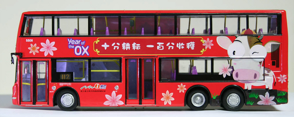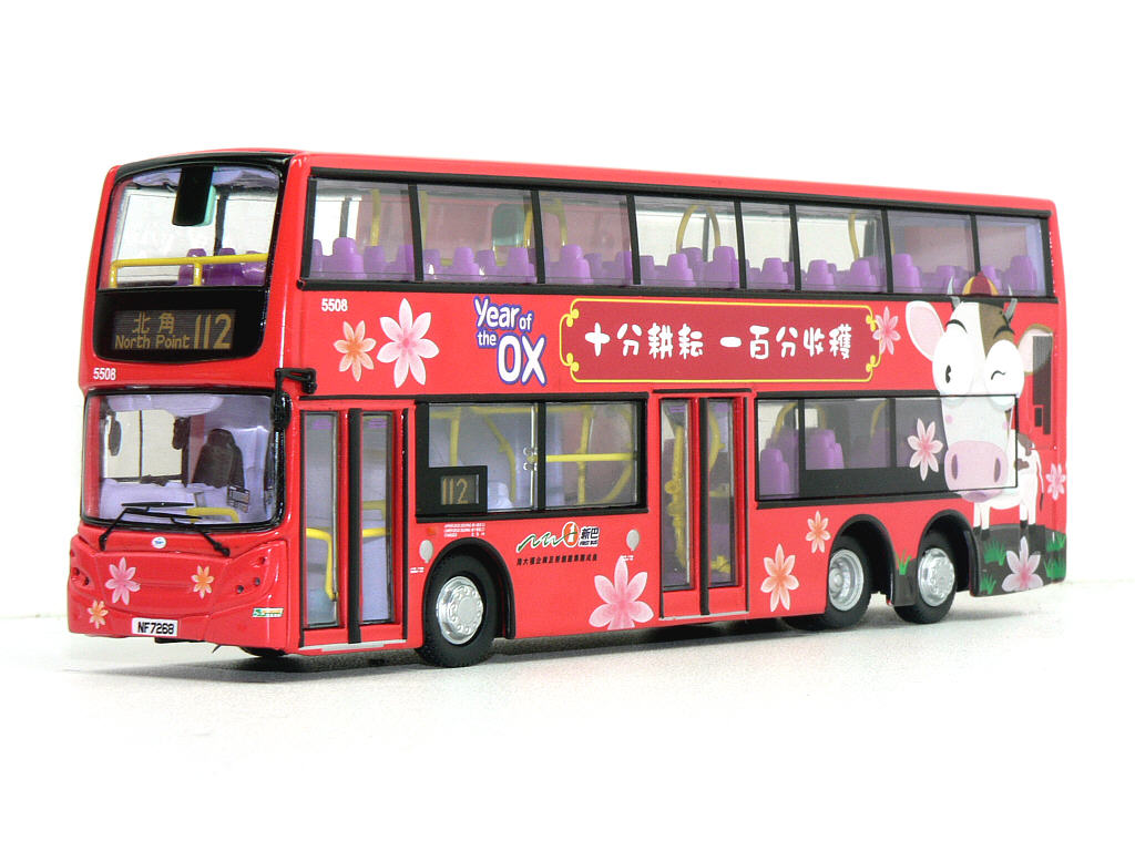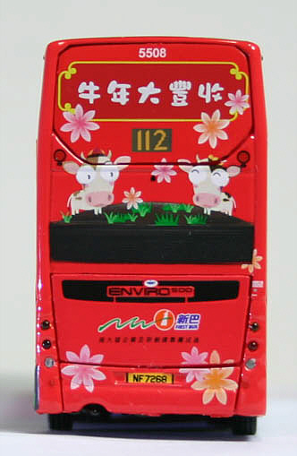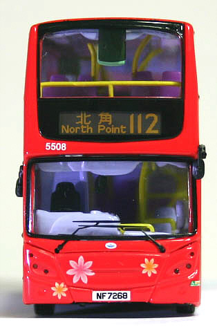 The bus - 5508 is one of a batch of 18 Alexander Dennis Enviro500s fitted with Euro IV environmentally friendly engines. They were ordered in early 2007 and entered service between February 2008 and June 2008. The bodies were shipped to Hong Kong in kit form and assembled by NWFB/Citybus. |