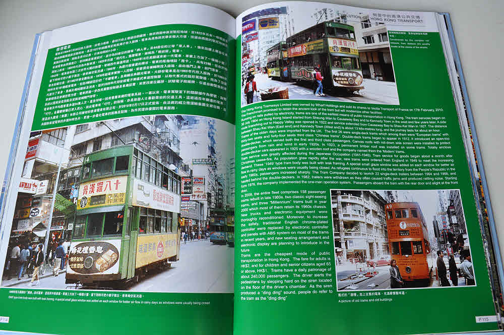Another excellent book which gives the reader an insight into the history of the various modes of transport, and not just buses. Something I learnt was the fact that the public light buses used to have red waistrails, but to allow advertising along the side of the vehicles, the roof was painted instead. The english text is certainly a great help for those who can't read Chinese. Most photographs are a good size and there are some stunning double-page spreads. A must for any Hong Kong transport enthusiast and a bargain at just HK$198. |