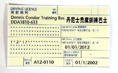 Driver Training livery. The DM class of China Motor Bus (CMB) entered service in 1990 and 1991.