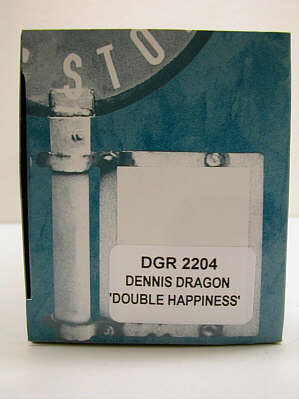 Dennis Dragon with all-over advertising for "Double Happiness". The model