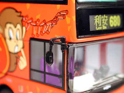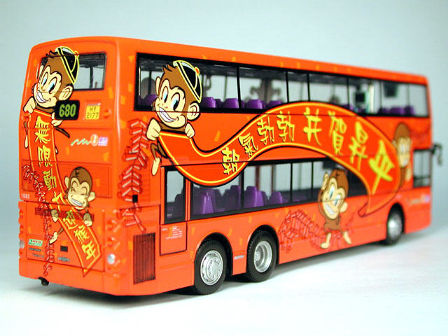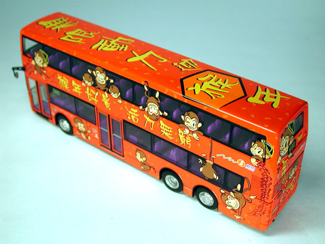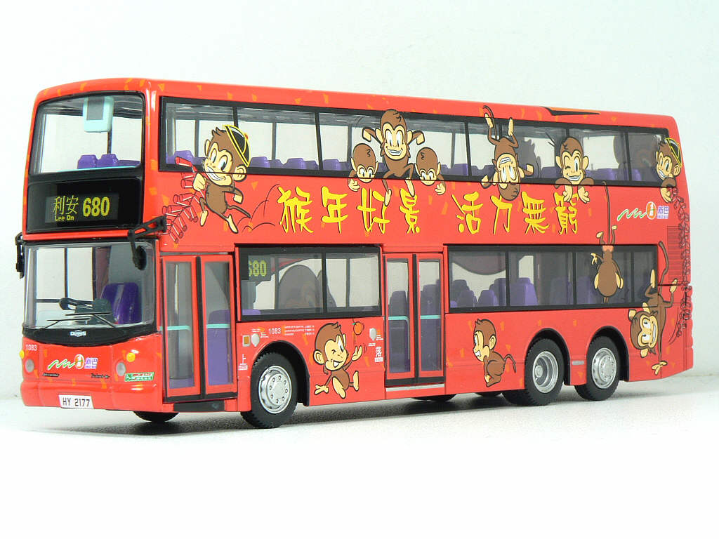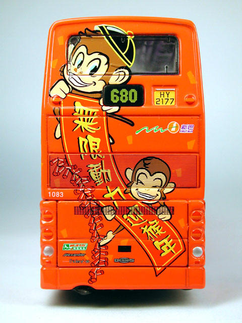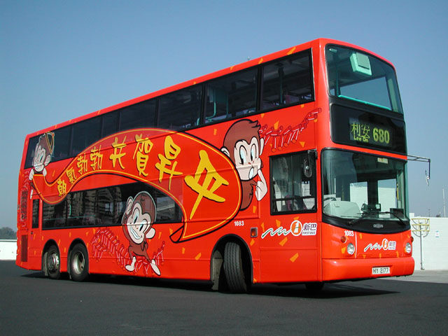 The bus - New World First Bus unveiled its 'Year of the Monkey' livery on 30th December 2003, the colourful decals being applied to Dennis Trident Fleet No. 1081. |