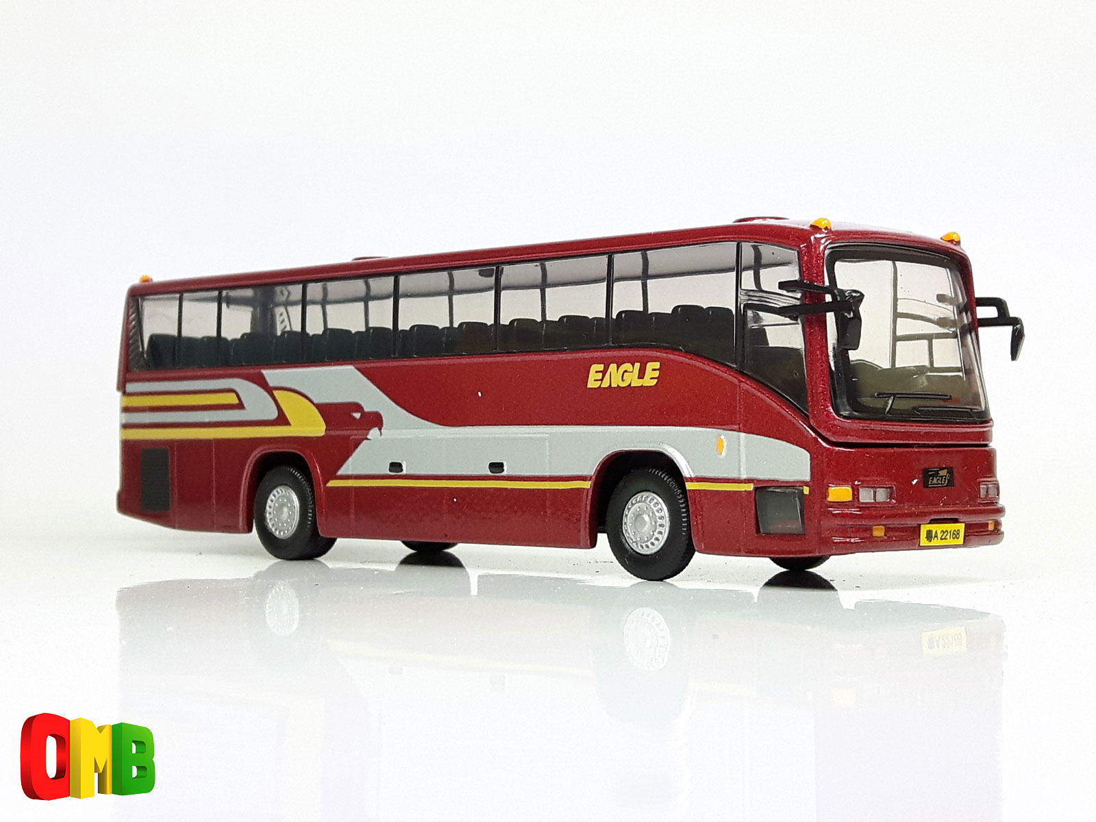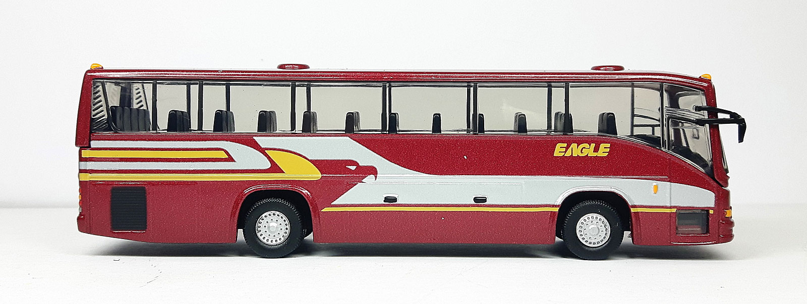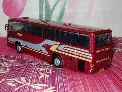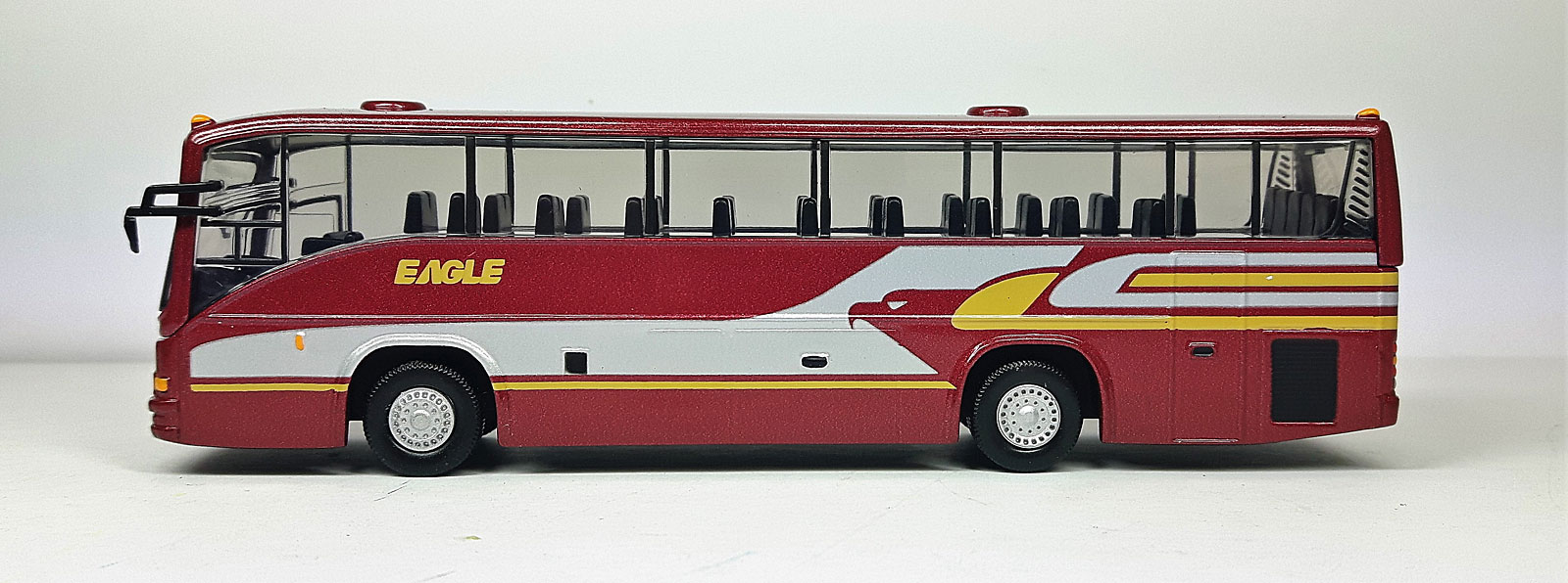 - this model carries a metallic maroon livery with silver/yellow trim.