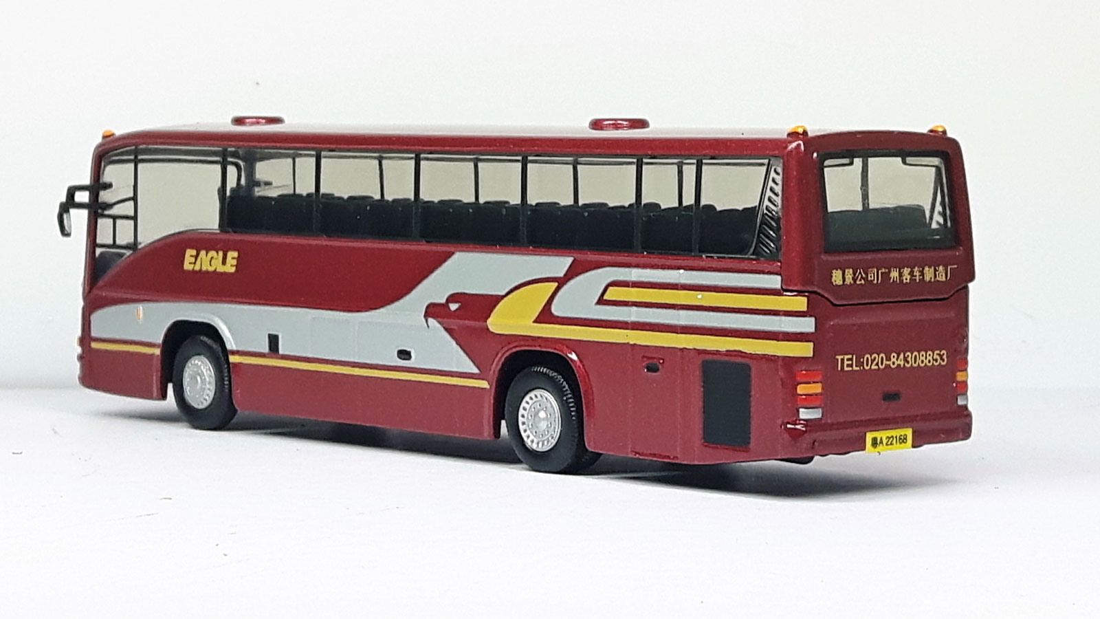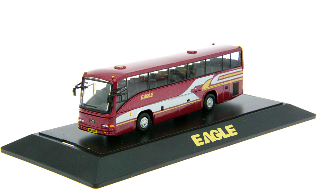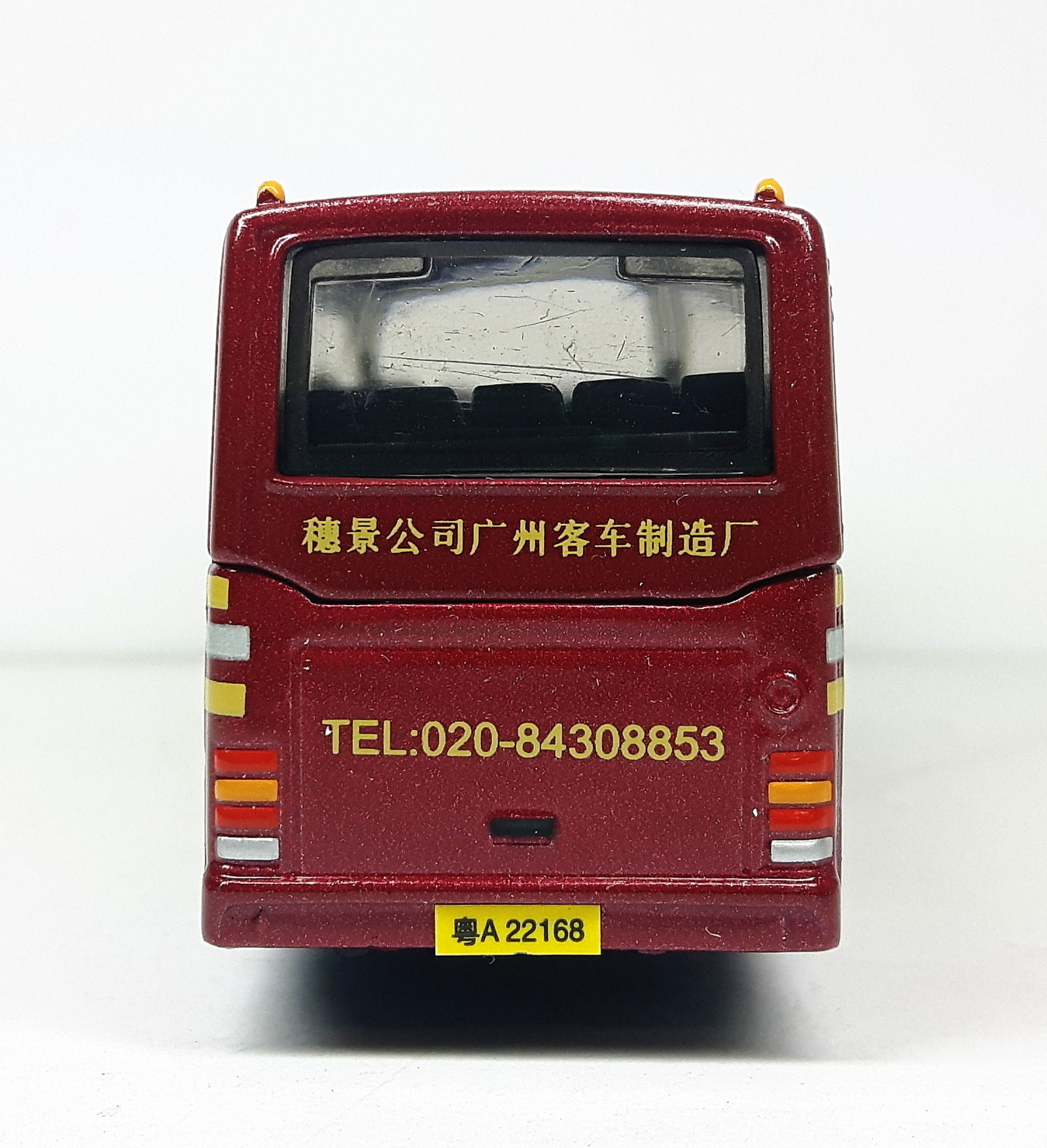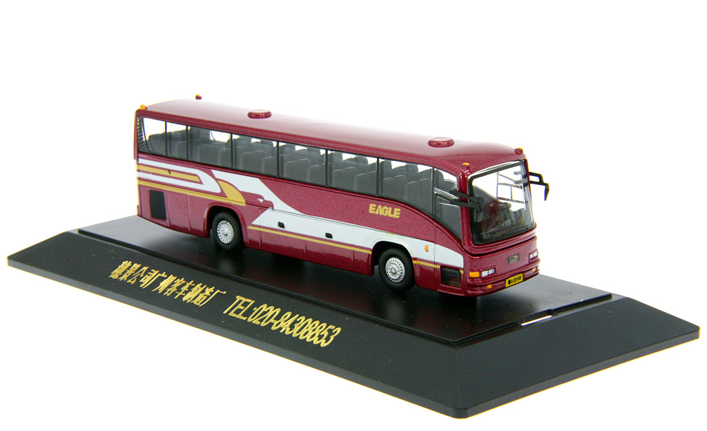 - this model carries a metallic maroon livery with silver/yellow trim.