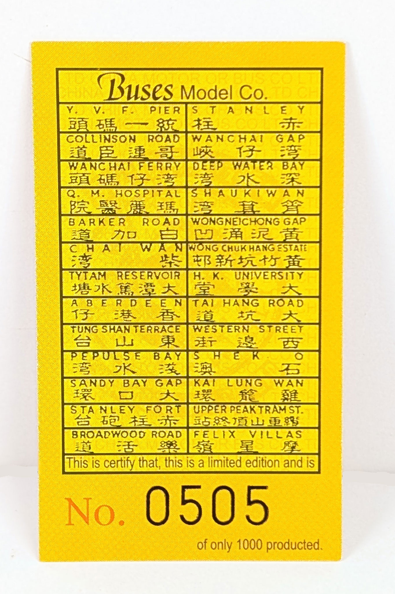 Buses Model Co. The other features HK4250 on route 1 to Y.V.F Pier (200800A1).