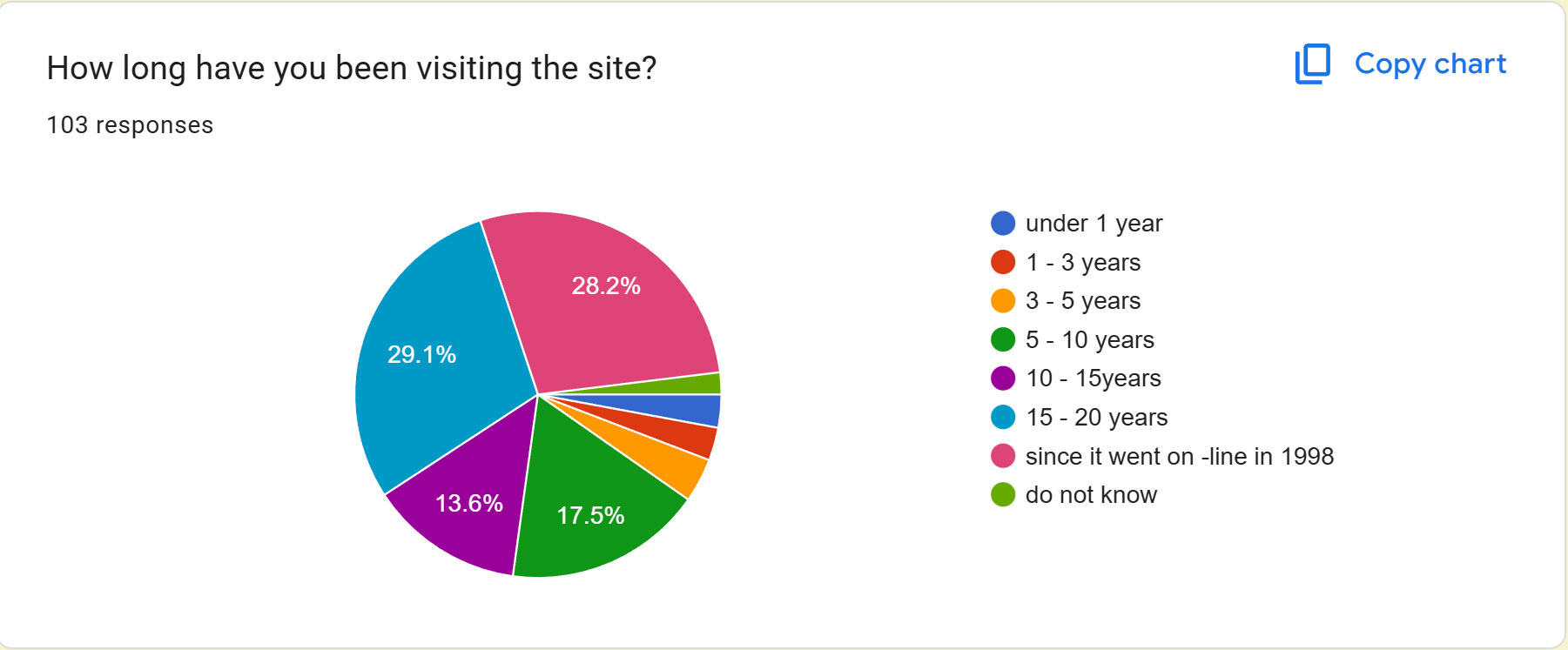 57% of visitors have been visiting site for over 15 years and I would
