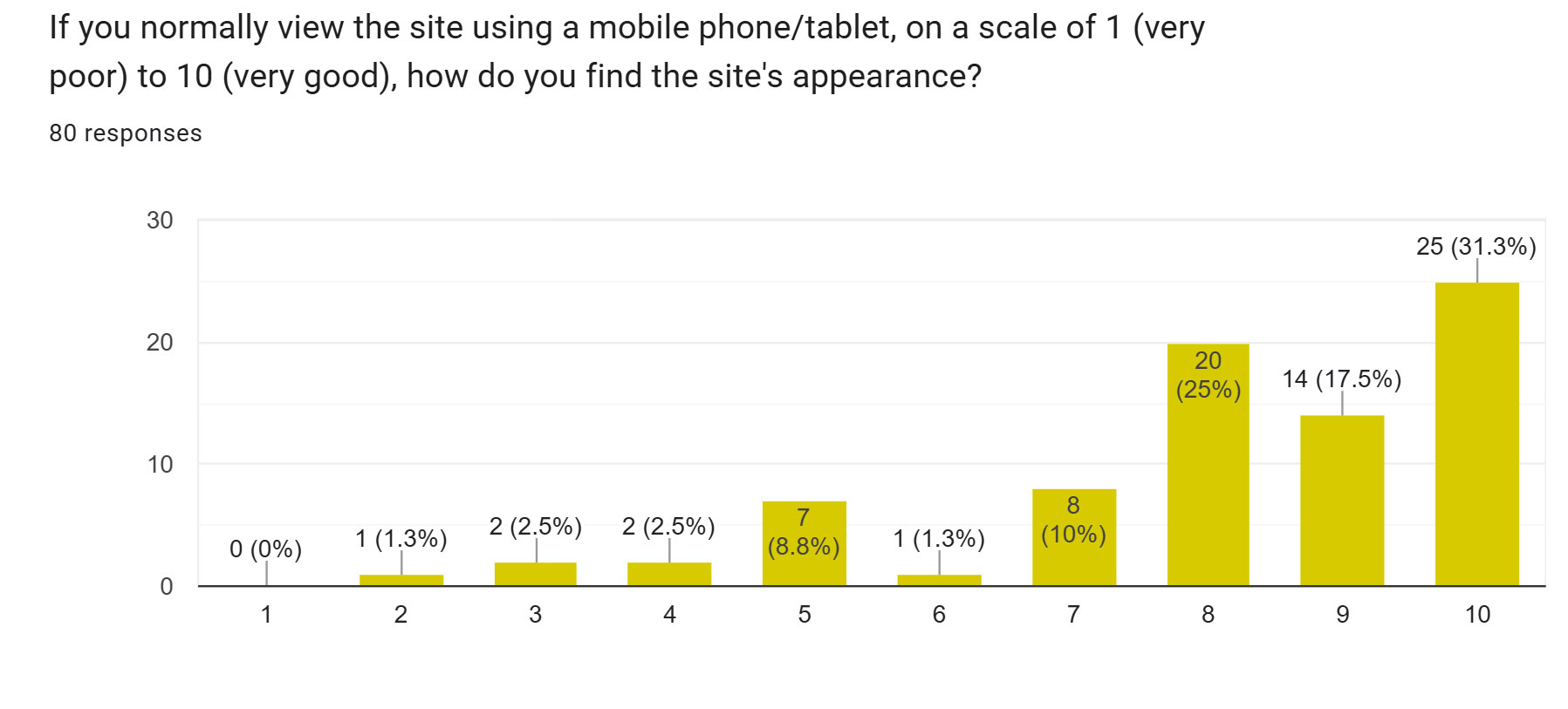 the site using a mobile phone/tablet gave a score of eight or more for