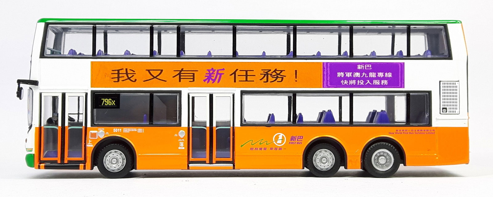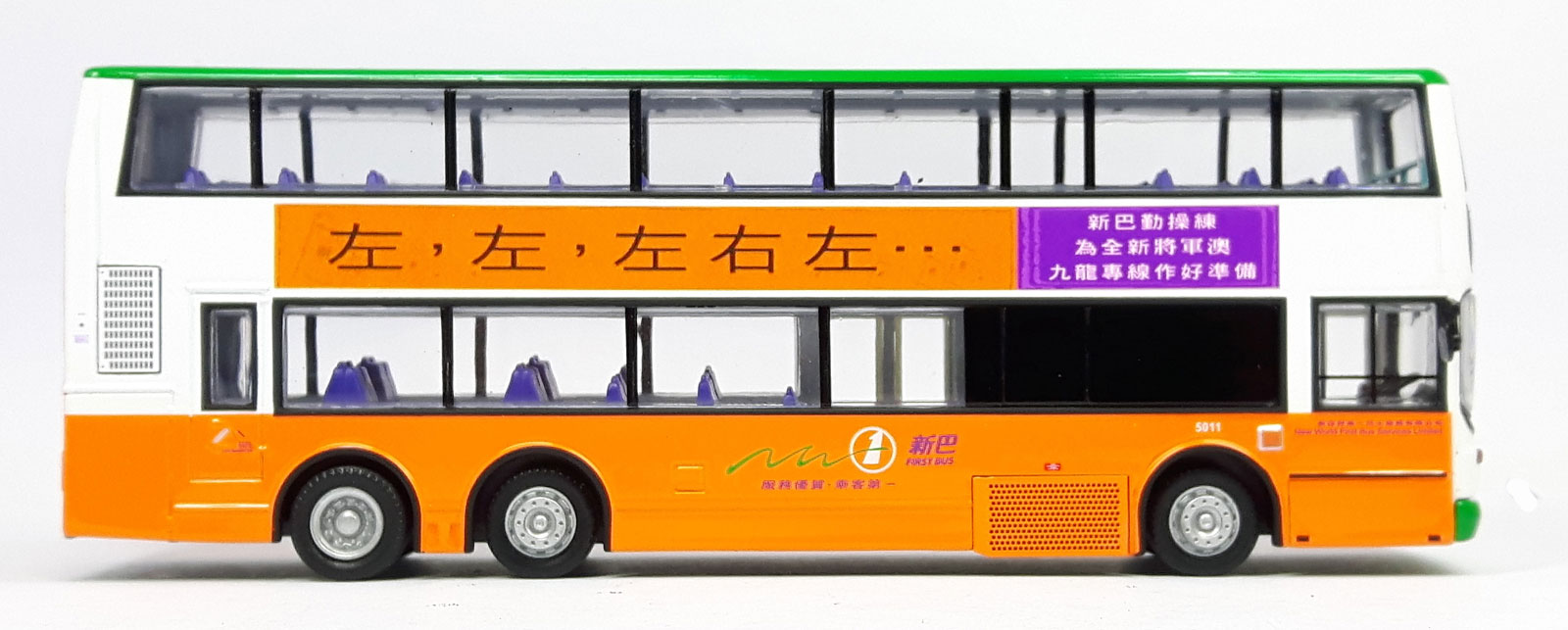 No 5011 with special advertising. New World First Bus has allocated this