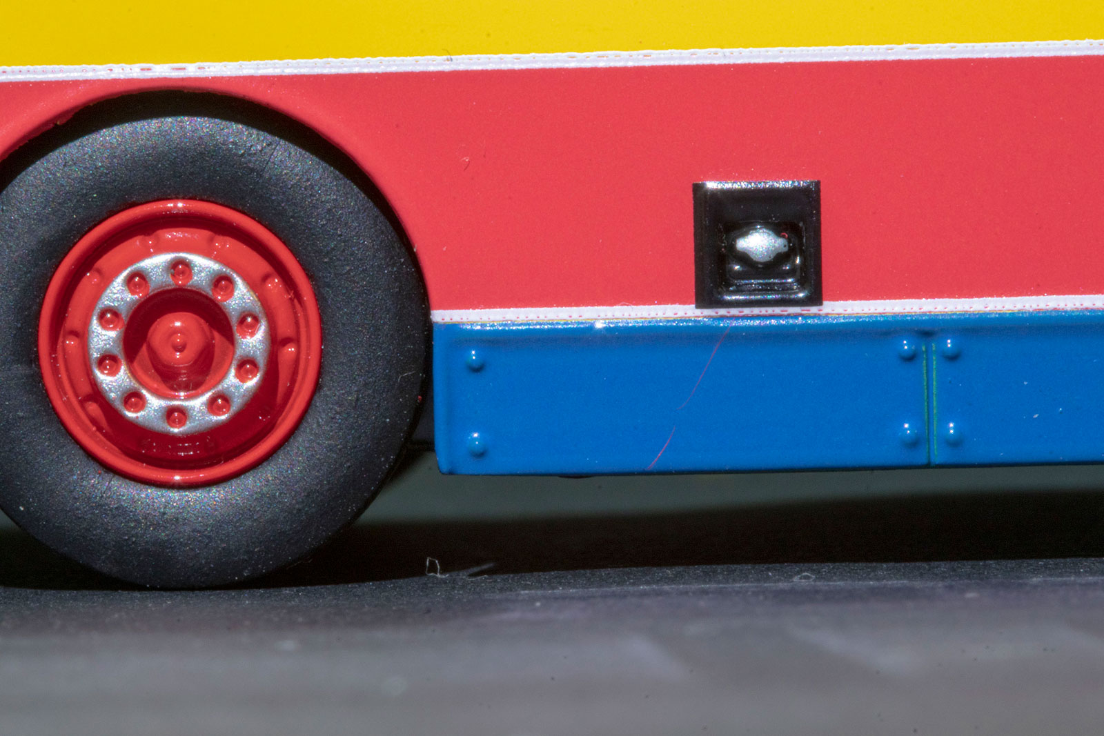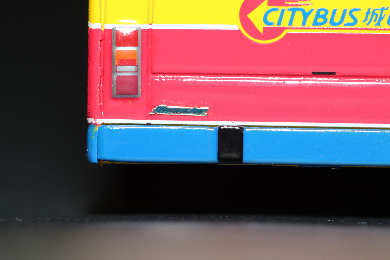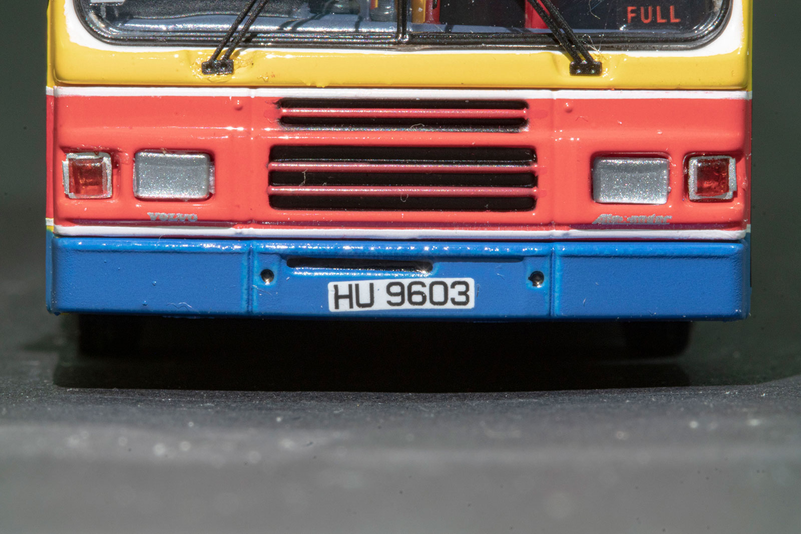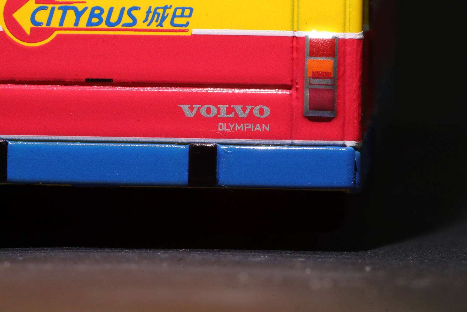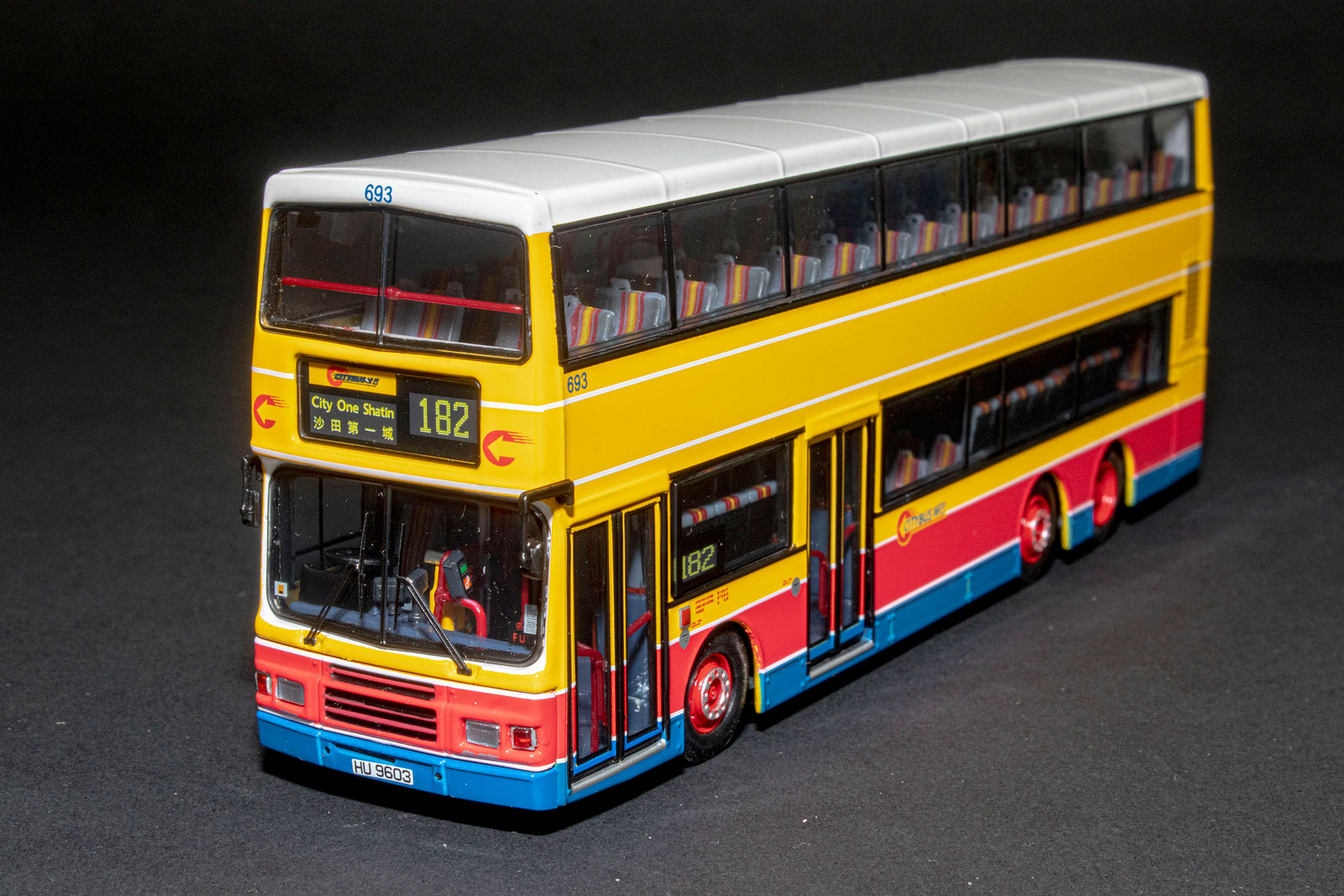 by Model 1 during the summer of 2017. My thanks to West Dan for providing a detailed set of photographs of the model. The bus - Citybus took delivery of over three-hundred 12-metre Volvo Olympians between February 1994 and August 1998. 693 was first registered on 30th July 1998 and was retired on 26th May 2017. |