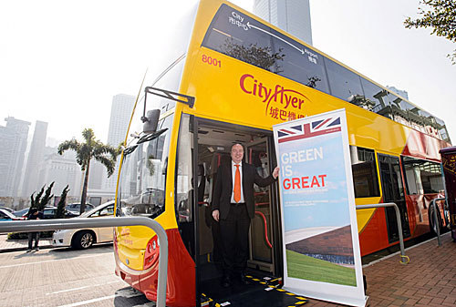 | In November 2012, Alexander Dennis unveiled its 'new-generation', three-axle Enviro500 double deck, and announced advance orders for more than 530. The stylish, new-look vehicle is lighter, more fuel-efficient and can carry 90 seated passengers. It has been designed specifically for the Asia Pacific market and 532 will be delivered to Hong Kong operators such as KMB, Long Win Bus, Citybus and MTRC during 2013 and early 2014. | |