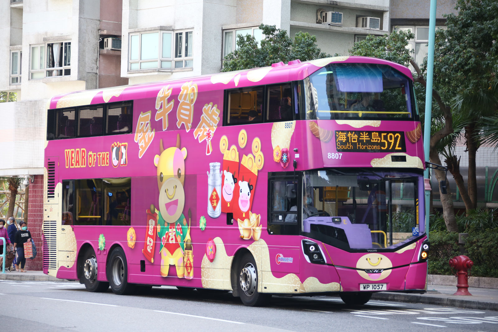 The Citybus Year of the Ox livery was first unveiled when a model of the bus was announced on 9th December 2020. The actual bus appeared in this livery on the 29th January 2021. It has been applied to Wrights Gemini 3 bodied Volvo B8L 8807 (WP1057). Here is a link to the model. |