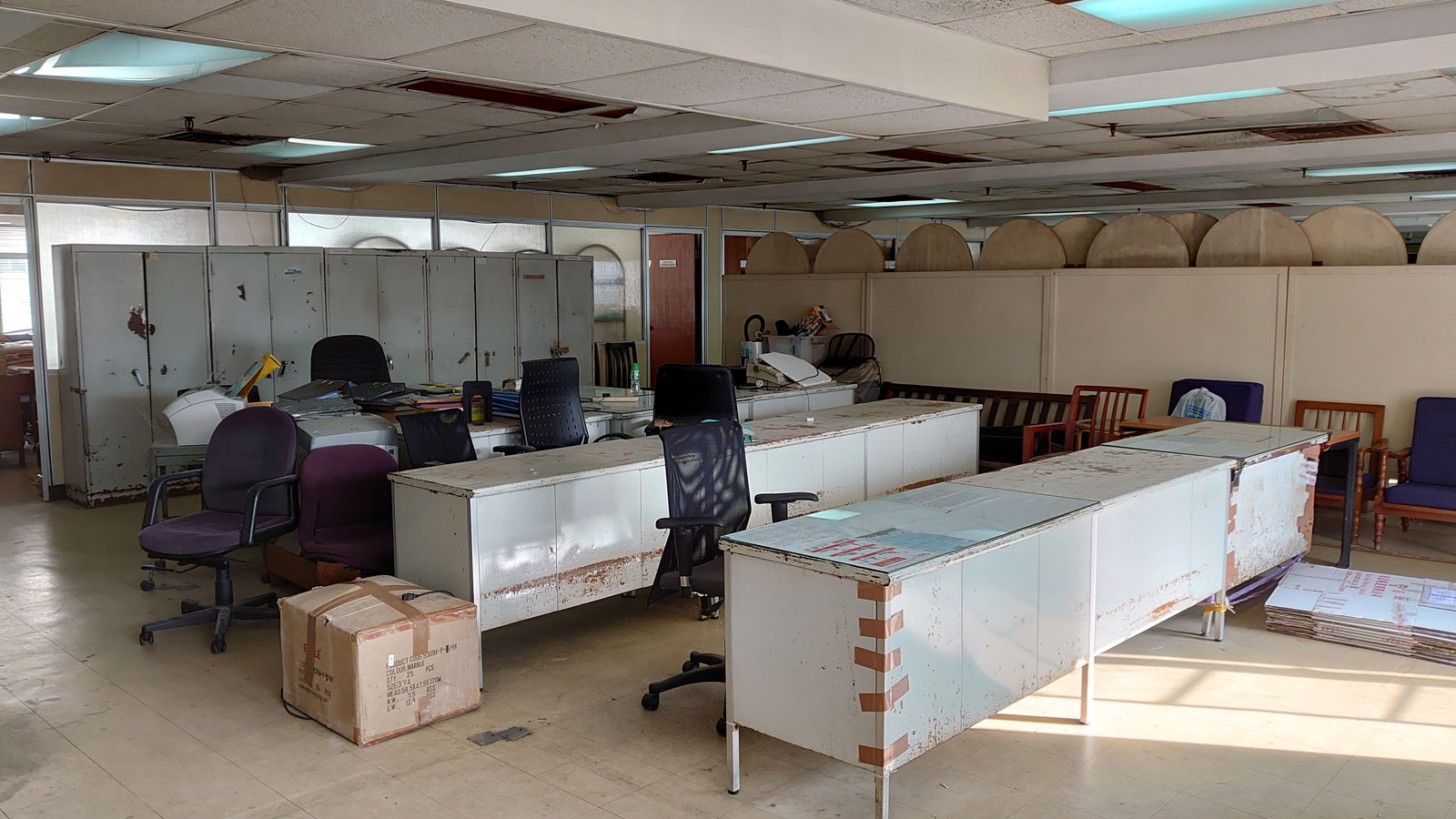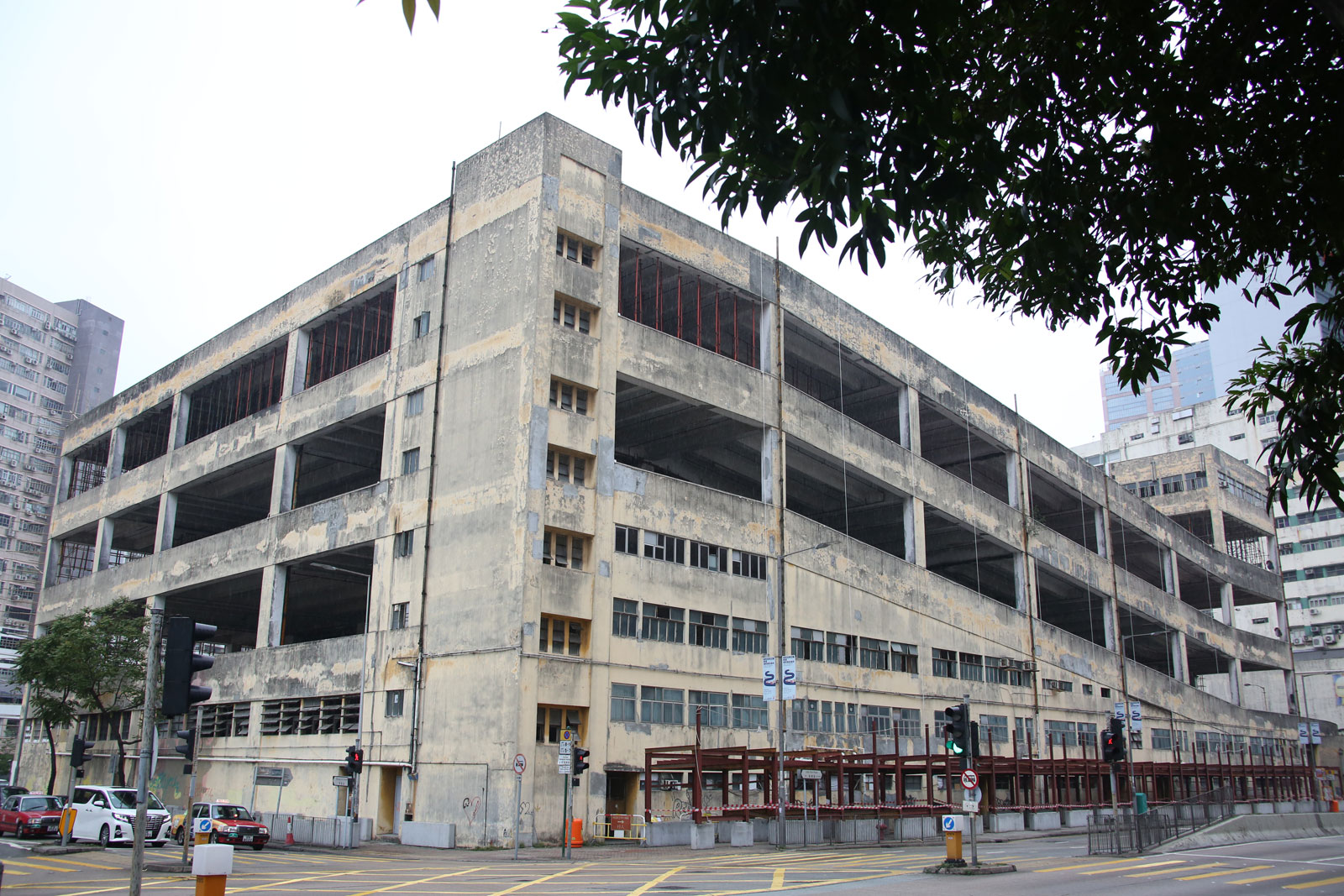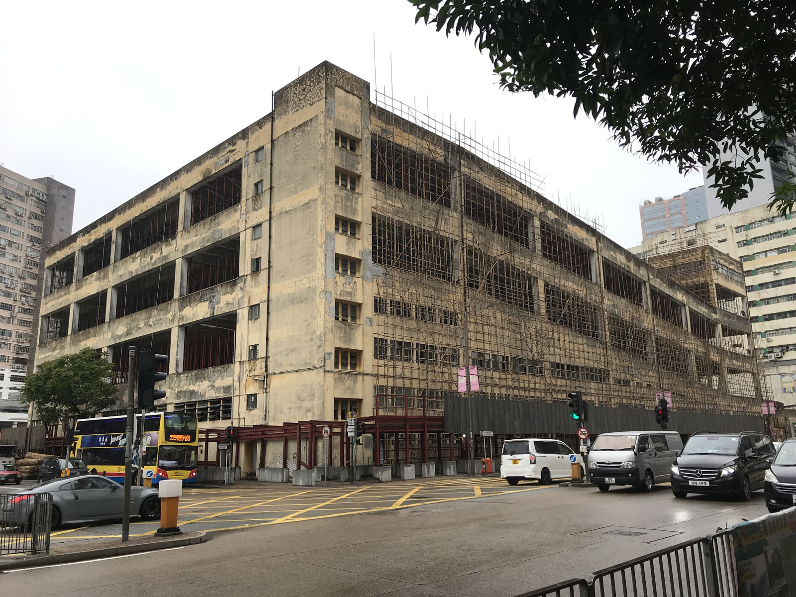 In 2020, scaffolding was being erected in advance of the buildings' demolition.