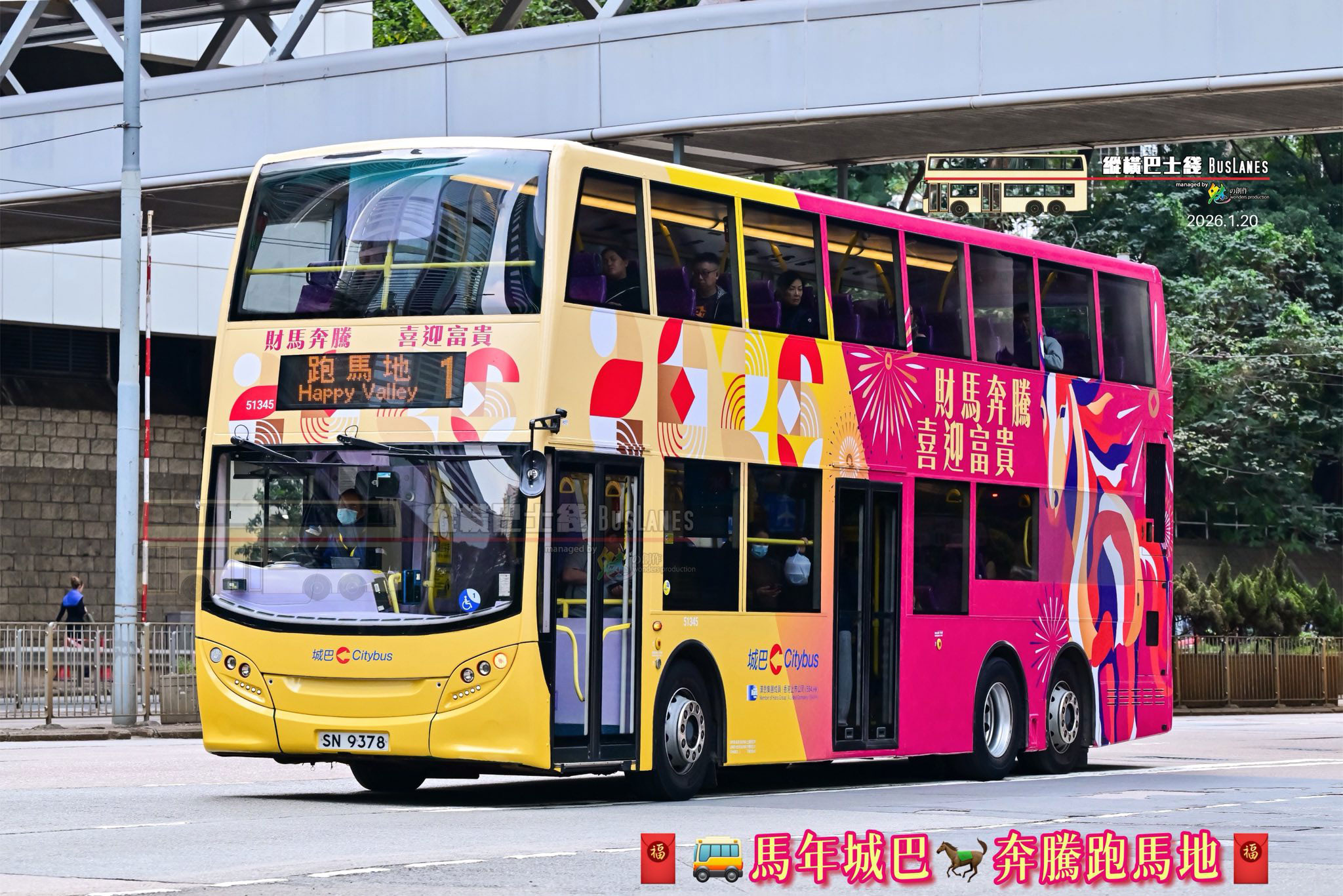 Not to be outdone, Citybus has today unveiled its Year of the Horse decorated bus, which features ADL Enviro500NG 51345 (SN9378). 19th January