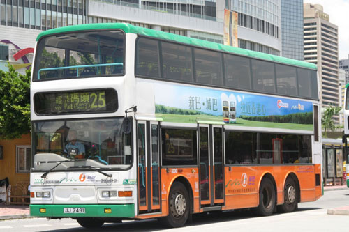 My special thanks to Ray Ng, a regular contributor of bus model photographs, who has sent me a selection of photos of these New World First Bus lowheight Dennis Tridents. The above is just a taster of his photos, taken purely for publishing on my site, The remainder will be added as soon as time allows. Left to right:- 3351 (KS 1615) on route 14 to Stanley Fort (63492/20087), 3301 (JH 6164 ) on route 15 to The Peak (63493/20088) and 3330 (JJ 7481) on route 9 to Shek O (63491/20086)