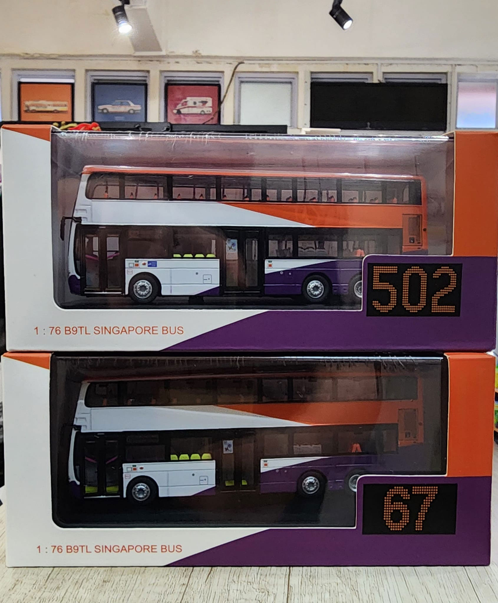 to yesterday's news, I can now provide the following update. The first version, on route 502, features SBS3643B and is limited to 550 pieces (MC76-B9TL1). The destination reads Express and it comes with separate SBS Transit decals. The second version, on route 67, features SG5573T and is limited to 550 pieces (MC76-B9TL2). The destination reads, I believe, Choa Shu Kang. It comes with separate SMRT decals. The third version features SG5003Y and is limited to just 120 pieces (MC76-B9TL3). This is a Tower Transit vehicle and the front destination reads Welcome to Tower Transit. My thanks to Muhd Naz Farihin and Chia Jin Hao for their help in providing details for these models. 14th August