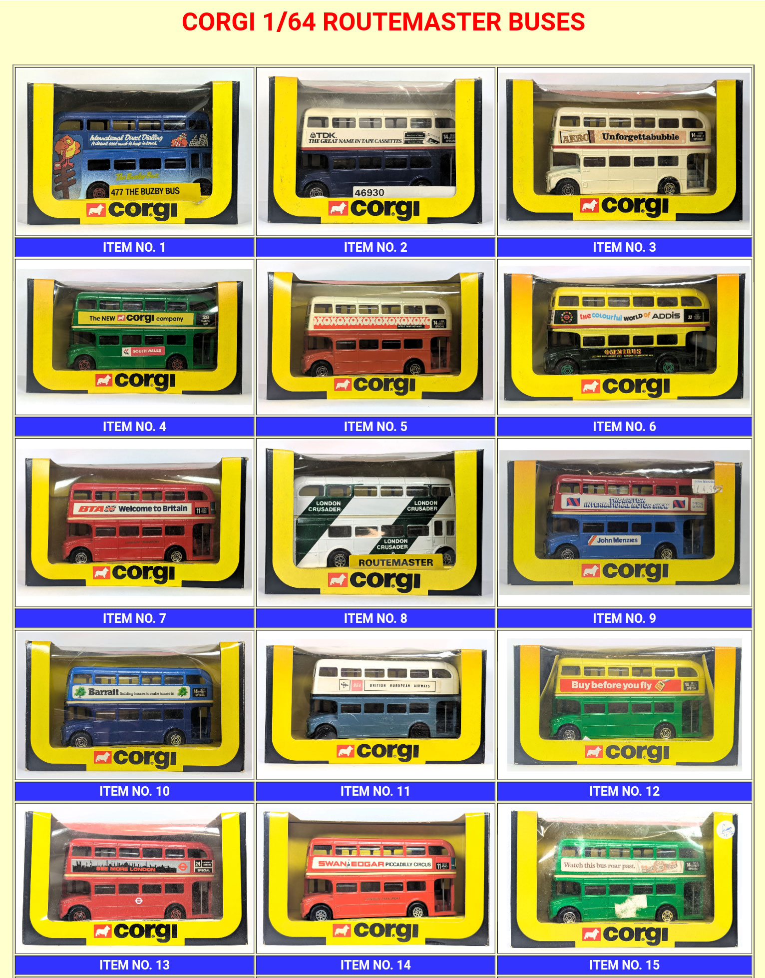 This is a selection of Corgi Routemaster buses that I am looking to dispose of - for more information, just follow this link. 8th September 2025 | ||||||||||