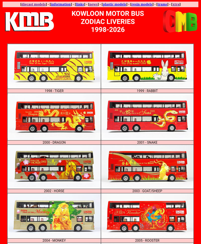 I have just updated the page in the XTRA section of the site that features the Kowloon Motor Bus Zodiac liveried models - just click on the above image. 15th February