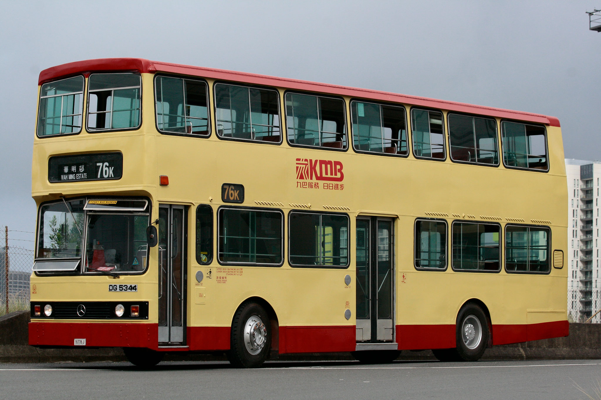 © Stephen Cho The Museum's preserved Kowloon Motor Bus Mercedes Benz O305/Alexander ME30 (DG5344) poses at White Bay after it had been freshly resprayed a week prior to the event.